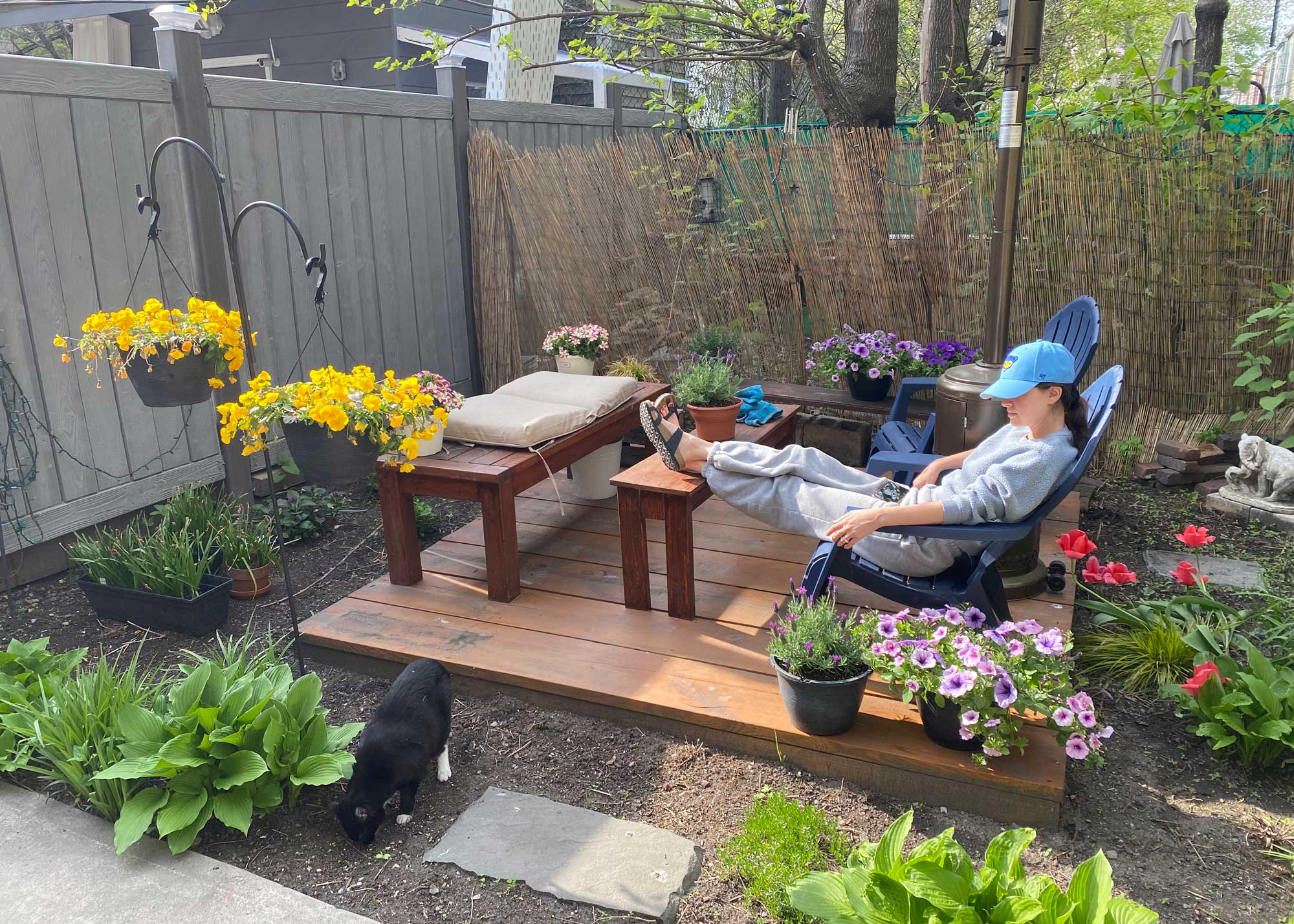 I sketch plans and build things like this small deck and wooden furniture: